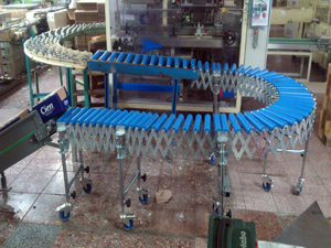 | Flachriemenförderer auf Rollenbahn | Flachriemenförderer auf Rollenbahn |